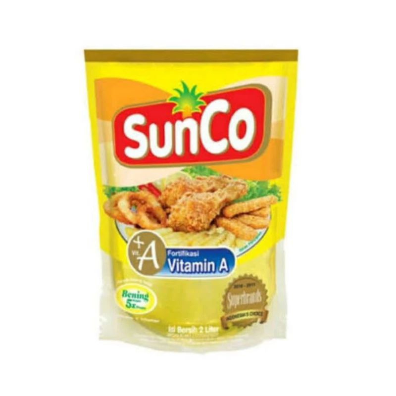 Sunco Refill 2L Diproduksi dari buah kelapa sawit segar pilihan dan difortifikasi Vitamin A.