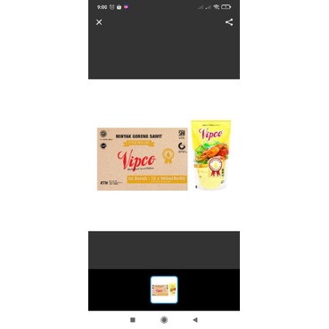 minyak goreng premium vipco ukuran 900 ml. terbuat dari kelapa sawit pilihan, mengandung vitamin A, D dan E. bersertifikat halal, SNI, GMP.