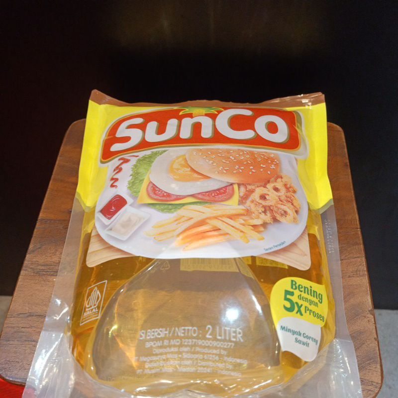 sunco diproduksi dari kelapa sawit pilihan melalui 5×ptoses , yaitu 3 kali pemurnian dan 2 kali penyaringan, sehinggah menghasil kan minyak goreng yang bening dan berkualitas