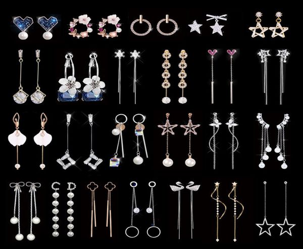 mix 20 pairs lot long earrings female tassel earrings korean retro pearl earrings for wholes8659575, Silver