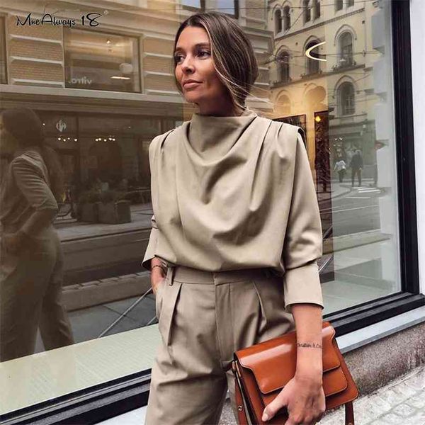 mnealways18 draped solid khaki and blouses spring elegant office blouse women ruched work long sleeve ladies shirt 210719, White