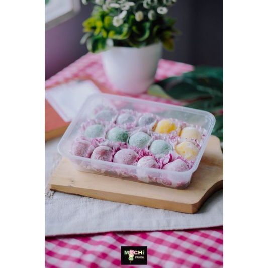 mochi panda dengan 4 varian rasa mix, ada coklat,keju,kacang dan oreo .