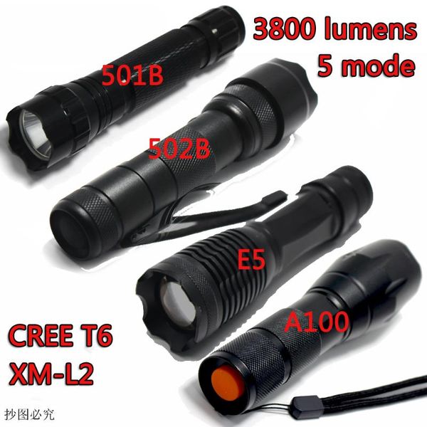 mode 501b 502b a100 e5 high brightness xm-l215w 3800 lumens t6 professional camping waterproof flashlights torches