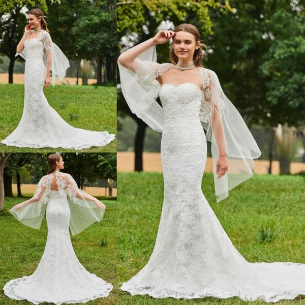 modest mermaid wedding dresses sweetheart neck full lace applique bridal gowns new arrival spring wedding dress with wrap, White