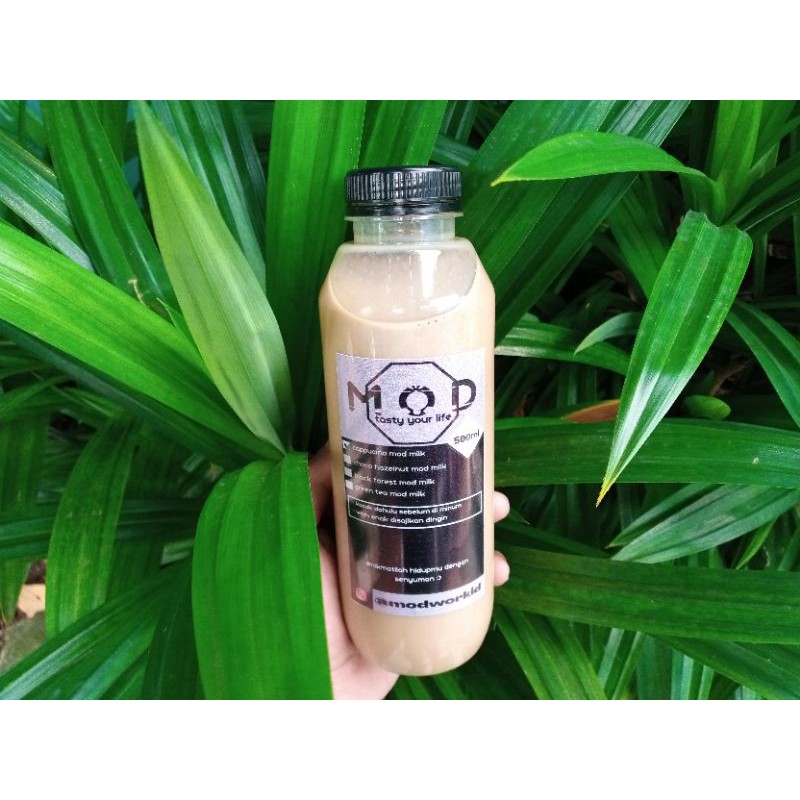 menjual minuman botol kekinian dengan ukuran 500ml dengan varian rasa cappucino, choco hazelnut, blackforest, greentea..