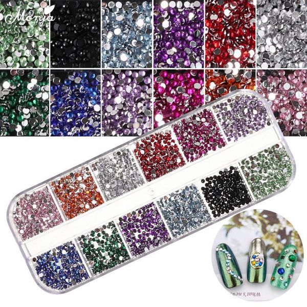 monja 2/4mm 12 gird/box nail art flat back glitter rhinestone 3d diy charm round decorations accessories manicure too1, Silver;gold