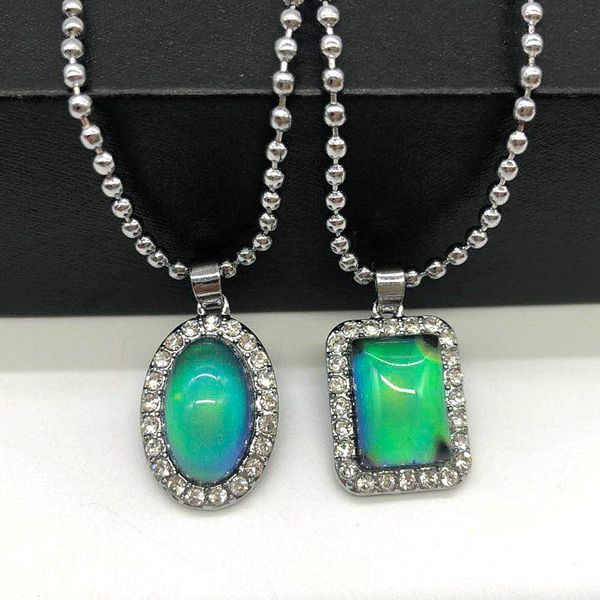 mood necklace square peach heart fashion women color changing necklaces, Silver