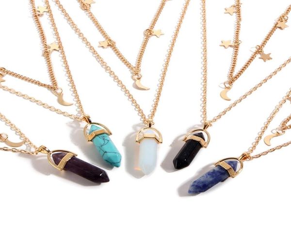 moon bulk charms 6 side pendulum bullet two layer necklace opal malachite natural stone pendant necklace healing crystals3131773, Silver