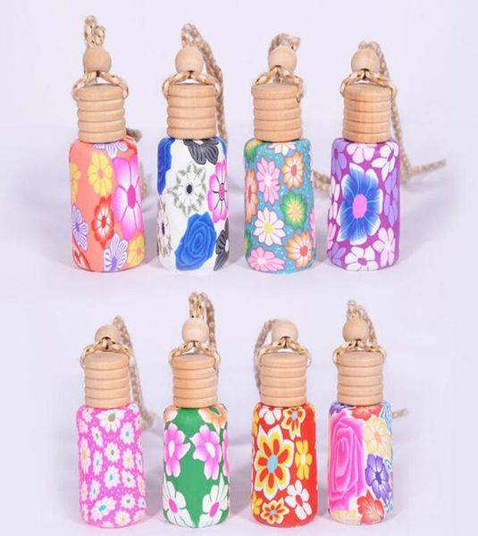 most popular 15ml car hanging rope empty decoration bottle hand made polymer clay ceramic essential oil perfume bottles with woode6071330