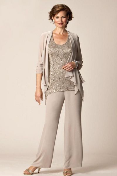 mother of the bride pant suits long sleeves chiffon jacket lace three pieces groom mother dresses, Black;red