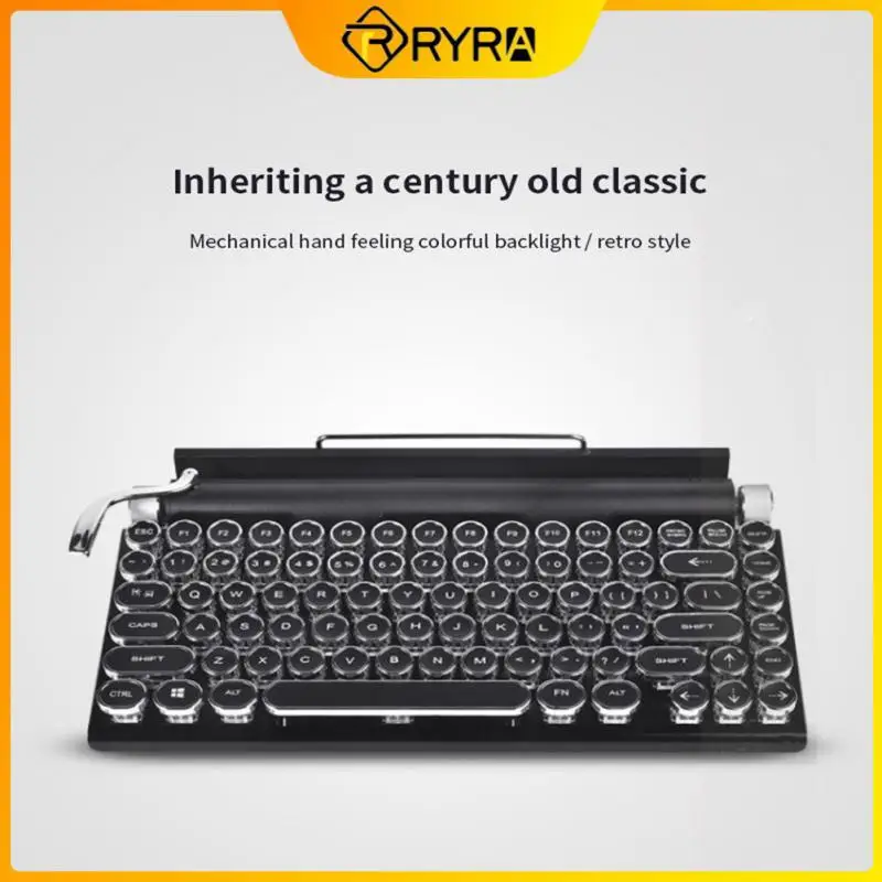 RYRA Typewriter Wireless Bluetooth Keyboard Mechanical Keyboard Dot Retro Typewriter Keyboard Punk Keycap For Desktop PC Laptop
