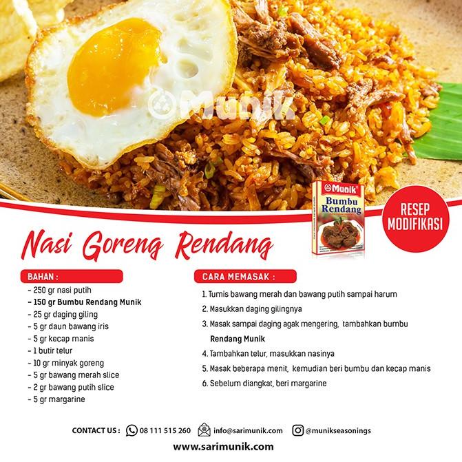Kelezatan masakan rendang Anda tanpa perlu lama mengolah bumbu dapur dengan Bumbu Munik Rendang.