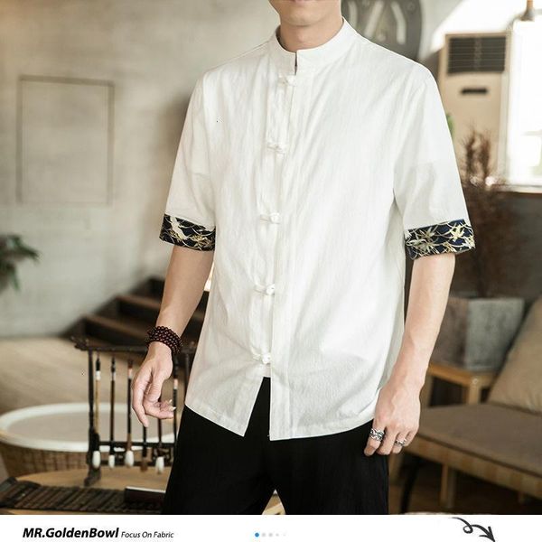 mrgoldenbowl man 2020 chinese style cotton linen shirts mans short-sleeved buckle patchwork shirts male summer oversize clothes1, White;black