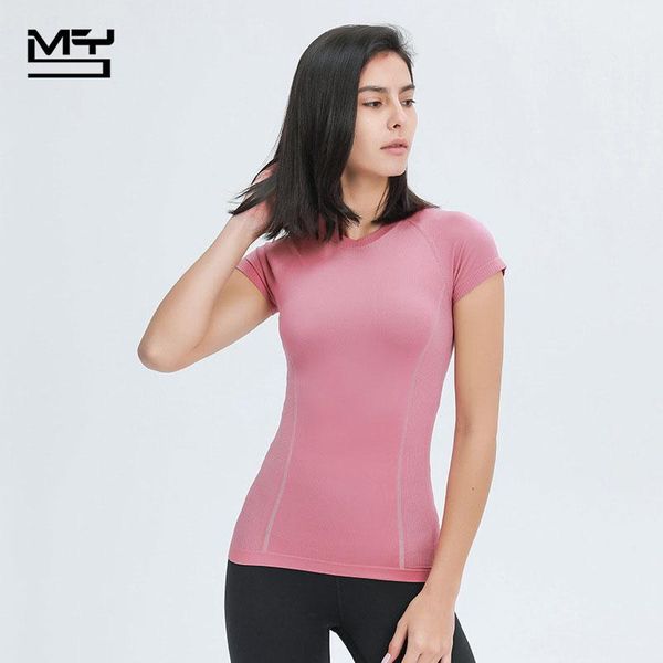 mys yoga t-shirt women leisure short sleeve round neck slim sports elastic quick drying fashion fitness running gym pullover, White;red