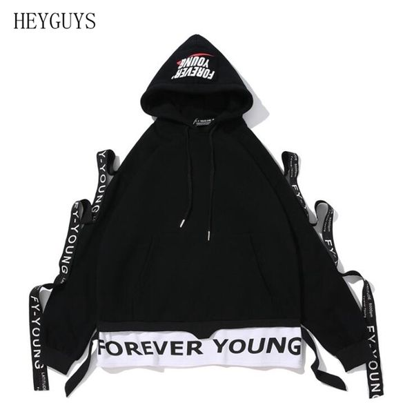 nagri hoodies men fake 2 pieces plus velvet hooded high street pullover sweatshirt men fashion hip hop streetwear hoodie 201113, Black
