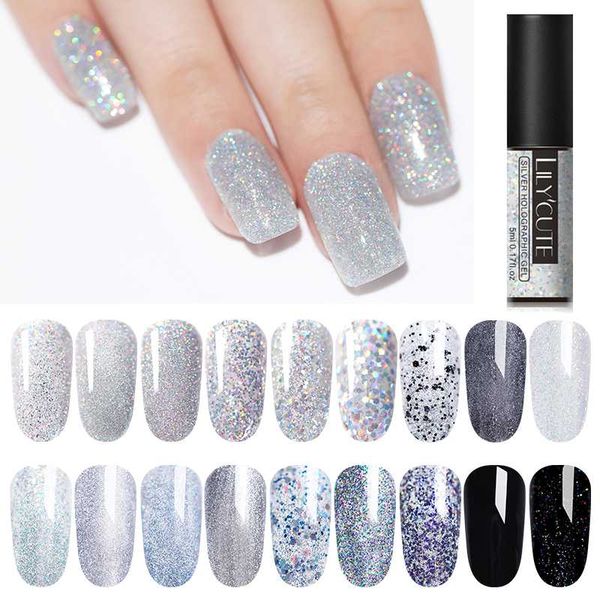 nail gel lilycute 5ml silver polish glitter sequins uv varnish soak off long lasting art, Red;pink