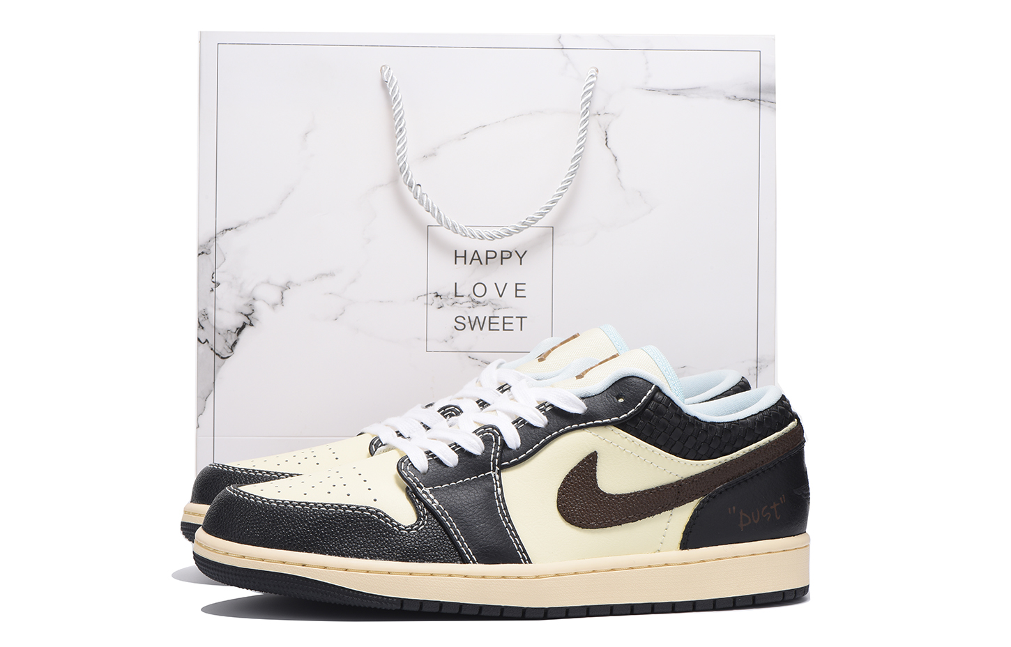 Jordan Баскетбольные кроссовки Air 1 с антискользящим и износостойким покрытием, низкие, винтажные, мужские, бежевые, черные, коричневые