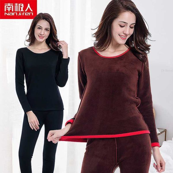 nanjiren women thermal underwear sets cotton super thick underwear casual long johns sets female solid color thermal pajamas 201124, Black;pink