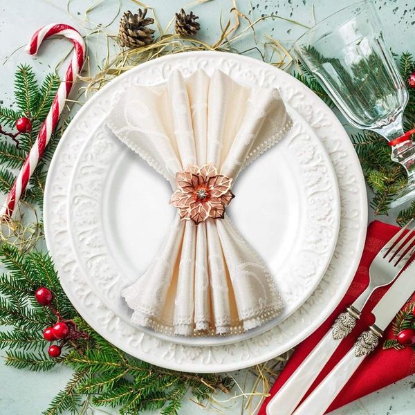napkin rings 12pcs with hollow flower adornment exquisite rhinestone napkins set for wedding banquet dinner decor