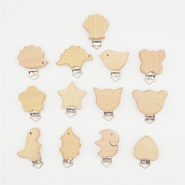 natural beech wood animal dummy pacifier chain clips diy teething baby teether jewelry accessories multi patterns