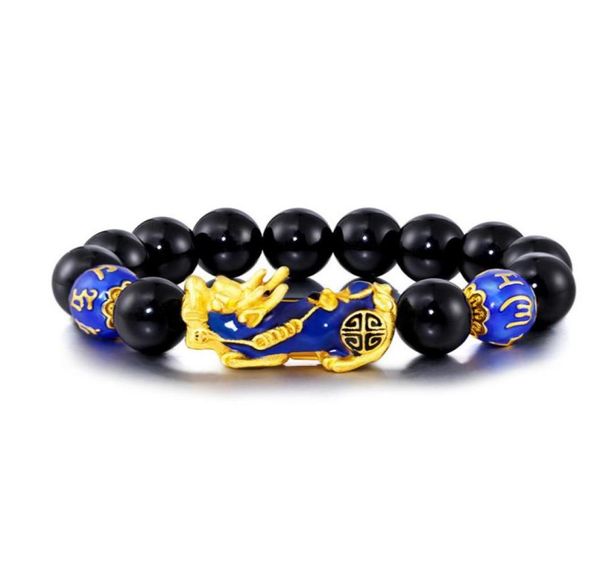 natural black agate beads bracelet gold plated 3d change colour pixiu charm chinese feng shui animal jewelry55149456590233, Golden;silver