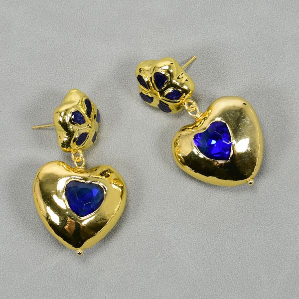 natural blue crystal glass dangle heart shaped gold plated beaded earrings blue jade stud luxury handmade for women gifts, Silver