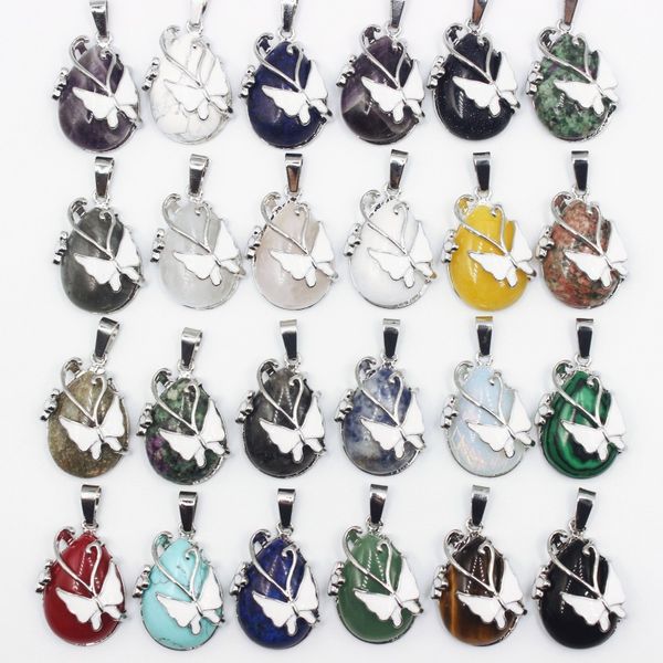 natural crystal stone insect butterfly pendant lapis amethyst rose quartz agate charms diy necklaces accessories, Bronze;silver