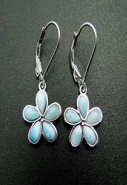 natural larimar jewelry flower earring fine jewelry silver dangle earrings 100 925 sterling silver jewelry for girl039s earrin8834474, Golden;silver
