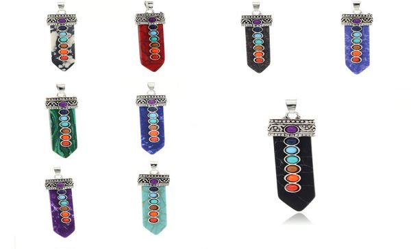 natural stone pendant necklace gemstone rhinestones chic jewelry sword point chakra healing reiki crystal hexagonal chakra pendant9666662, Silver