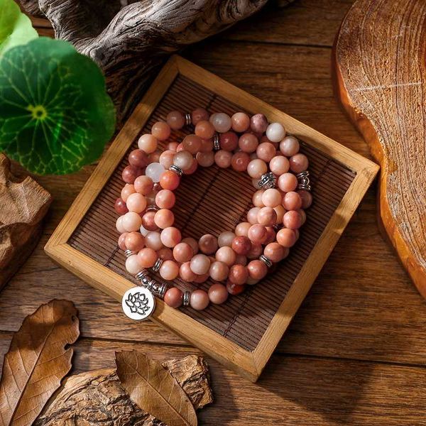 natural stone pink aventurine 108 mala bracelet spiritual jewelry for women, Black