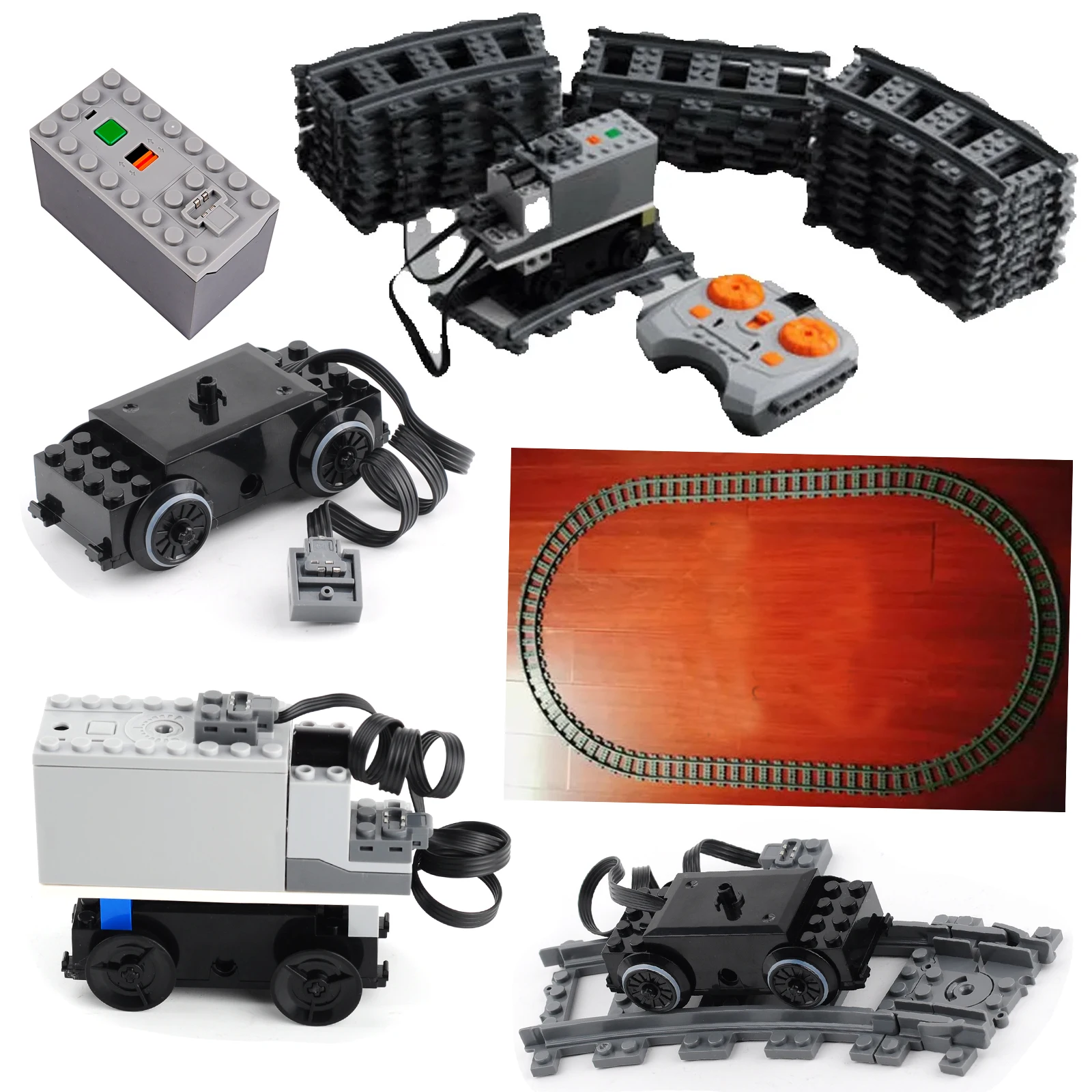 DIY Train Motor Set IR Remote Receiver AAA Battery Case LED Strip Rail Tracks compatible with 88002 city train PF MOC Blocks