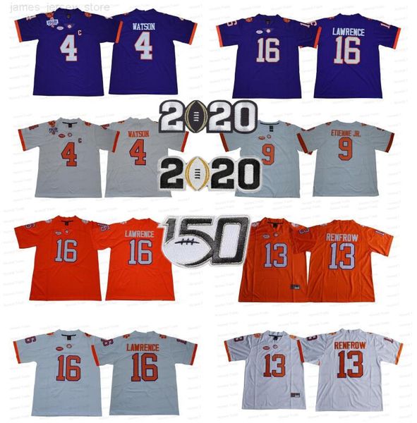 ncaa college jerseys clemson tigers trevor 16 lawrence football jersey deshaun watson 9 travis etienne jr hunter renfrow orange purple, Black;red