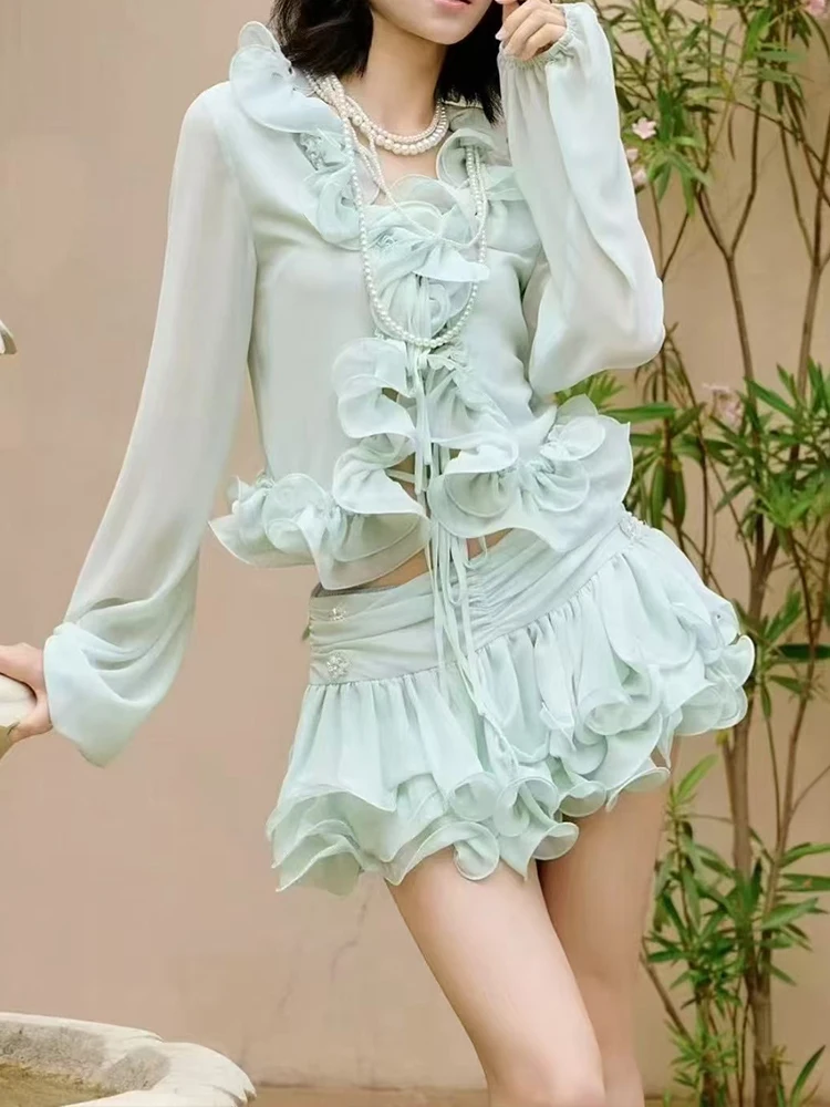 Женское ort Sve irt со плиссированным кружевным краем и квадратным воротником Bell Sve Faionable Commute Sle из смеси хлопка с высокой талией