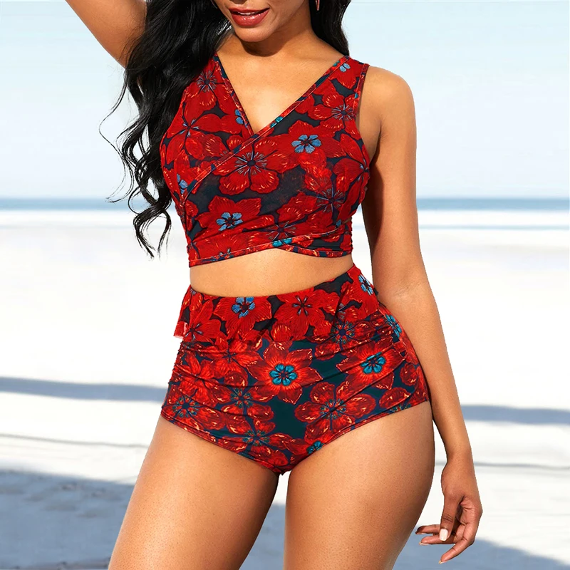 Plus Size Tankini Set Ruffled Swimsuit Female Separate 2019 Mujer High Waist Thongs Swimwear Cross Shirt Bathing Swimming Suits