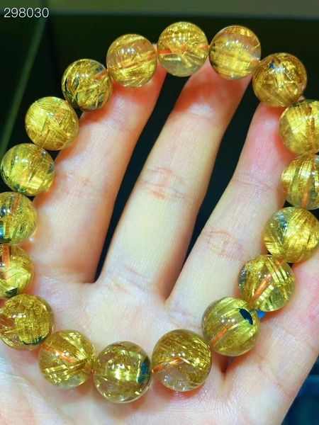 necklaces designer natural gold rutilated quartz clear round beads bracelet 11.3mm woman men brazil crystal jewelry brazil aaaaa, Silver