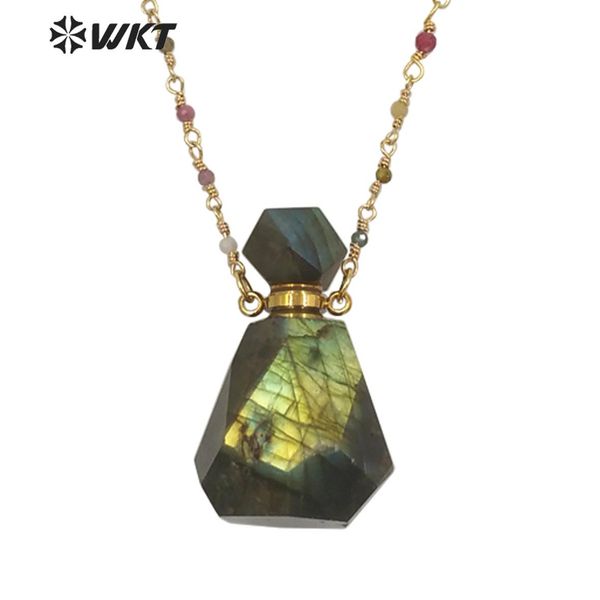 necklaces wtn1268 wkt precious 18 inch long rainbow tourmaline chain perfume bottle necklace high flash labradorite bottle necklaces, Silver