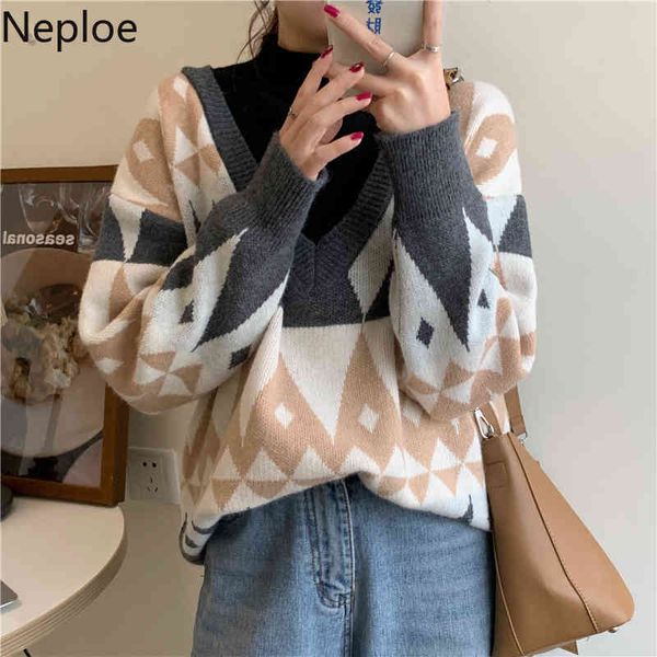 neploe fake two half turtleneck pullovers korean fashion knitted sweaters women winter clothes thicked loose jumper coat 210422, White;black