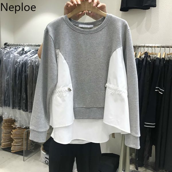 neploe sweatershirt women winter clothes o-neck long sleeve pleated hoodies loose patchwork streetwear casual coat 4g102 210422, Black