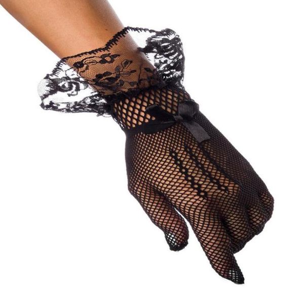 net lace black white wedding night bridal classy wrist length short lace fishnet ruffle finger fishnet gloves1741704, Silver
