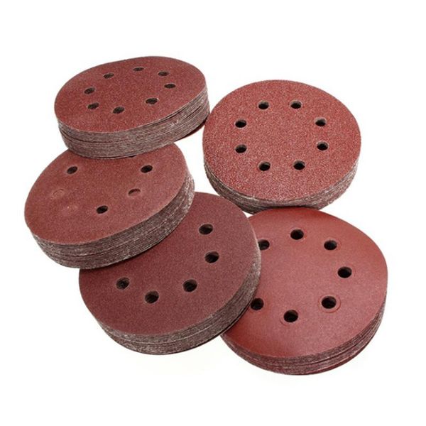 new 100 pcs 125mm 60-1000 grit hook loop sandpaper with 8 hole sand pads set sander disc abrasives tools for polish machine