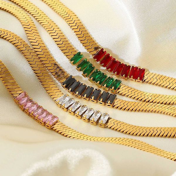 new 18k gold tarnish stainless steel flat snake chain moissanite gold iced out diamond tennis bracelet for men women, Silver