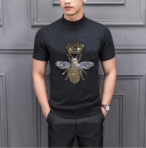 new 2021 winter casual men's sweater o-neck rhinestones slim fit knittwear mens sweaters pullovers pullover men pull homme nyw6, White;black