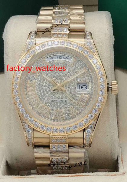 new arrived watch automatic men watch 41mm gold case diamond bezel and diamonds in middle of bracelet 4 color dial watches, Slivery;brown