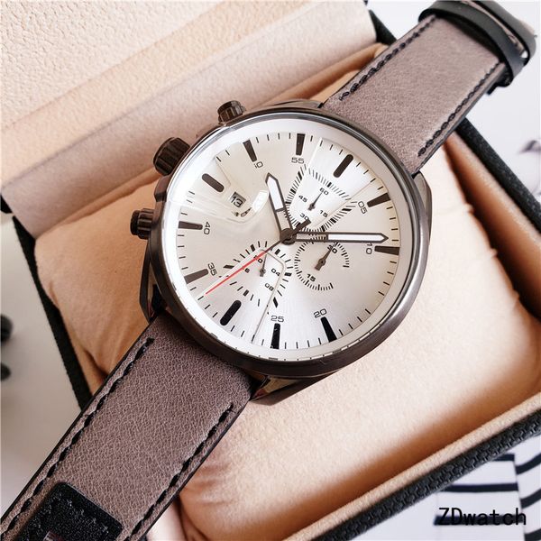 new arrrival fashion brand men watches unique design genuine leather strap chronograph quartz movement dz casual sport watch reloj de lujo, Slivery;brown