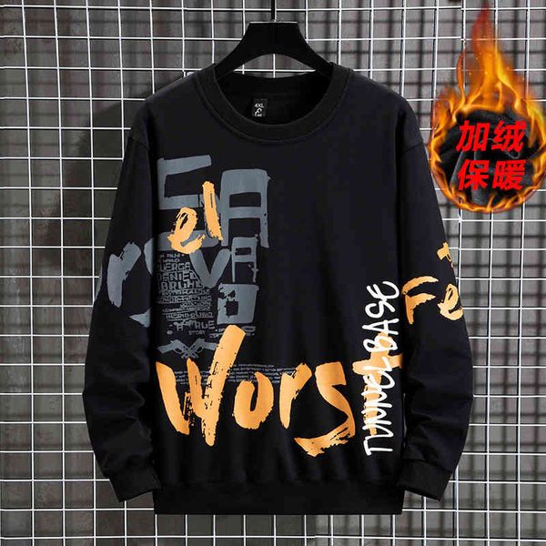 new autumn and winter new long sve plush warm cotton fattening oversized sweater men's wear, Black