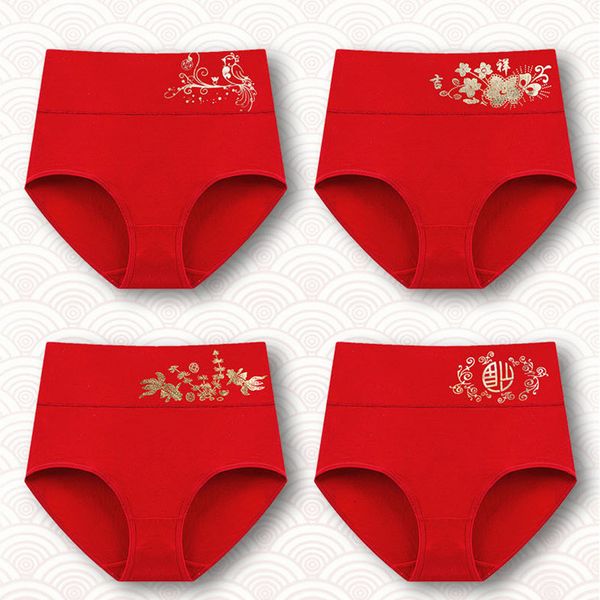 new benmingnian cotton printing high waist underwear women's briefs red, Black;pink