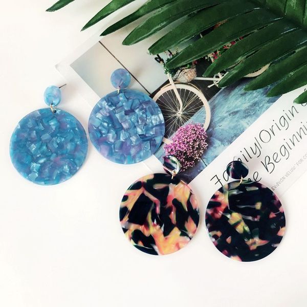 new bohemia styles exaggerated round resin blue mixed color pretty earring, geometric fashion trendy earring, Golden;silver