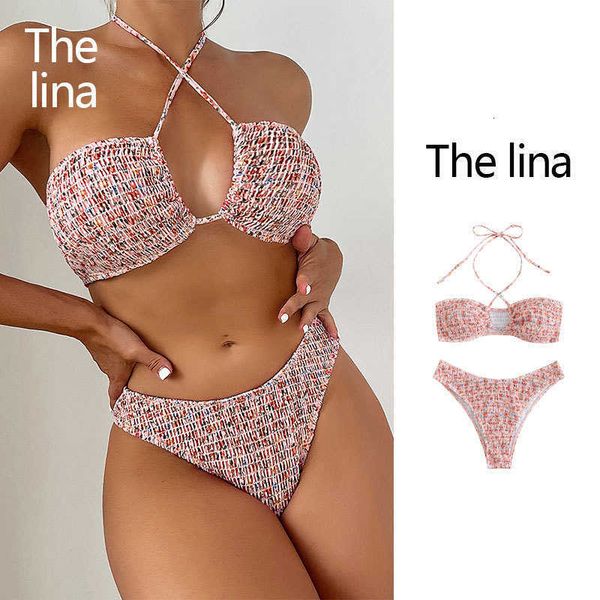 new collection 2023 fragmented flower high waist plastic hanging neck swimwear bikini, Black