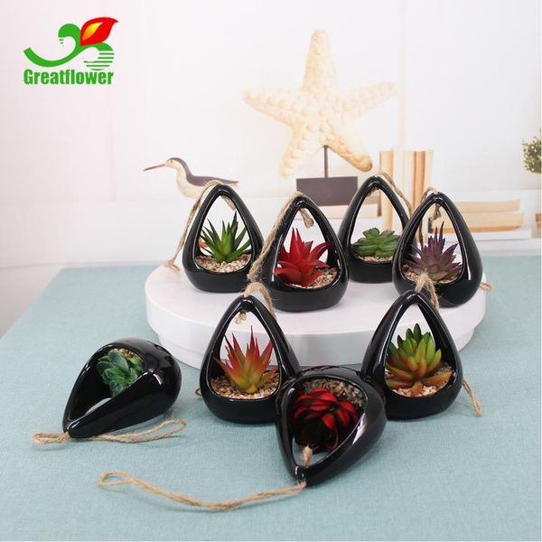 new creative black ceramic succulents bottle pot zakka cute hanging bonsai