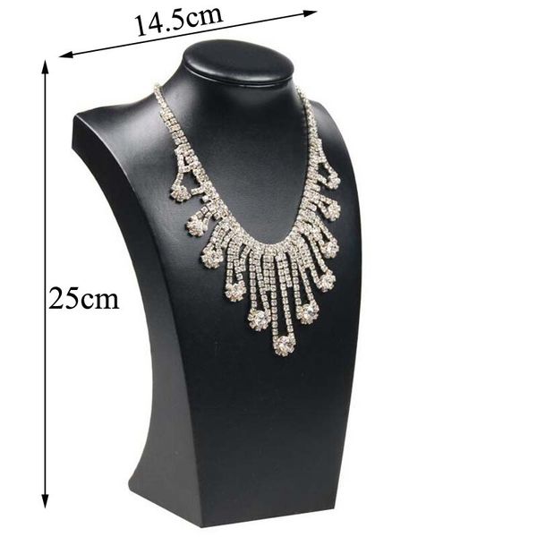new design black pu leather jewelry necklace stand pendants display bust choker holder jewellery rack show 3 options model, Black;white